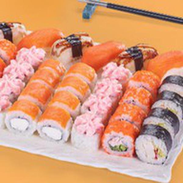 Состав: Филадельфия лайт (8 шт.), Калифорния супер лайт (8 шт.), Цезарь ролл (8 шт.), Лава краб (8 шт.), Суши с лососем (3 шт.), Суши с угрем (3 шт.) *Не забудьте заказать имбирь, васаби и соевый соус. Они не входят в стоимость заказа.